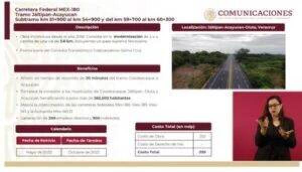 De acuerdo con Jorge Nuño, se busca un ahorro de 20 minutos de recorrido y “se fortalecerá las conexiones de los municipios de Cosoleacaque, Jáltipan, Oluta y Acayucan, beneficiando a más de 365 mil habitantes”.