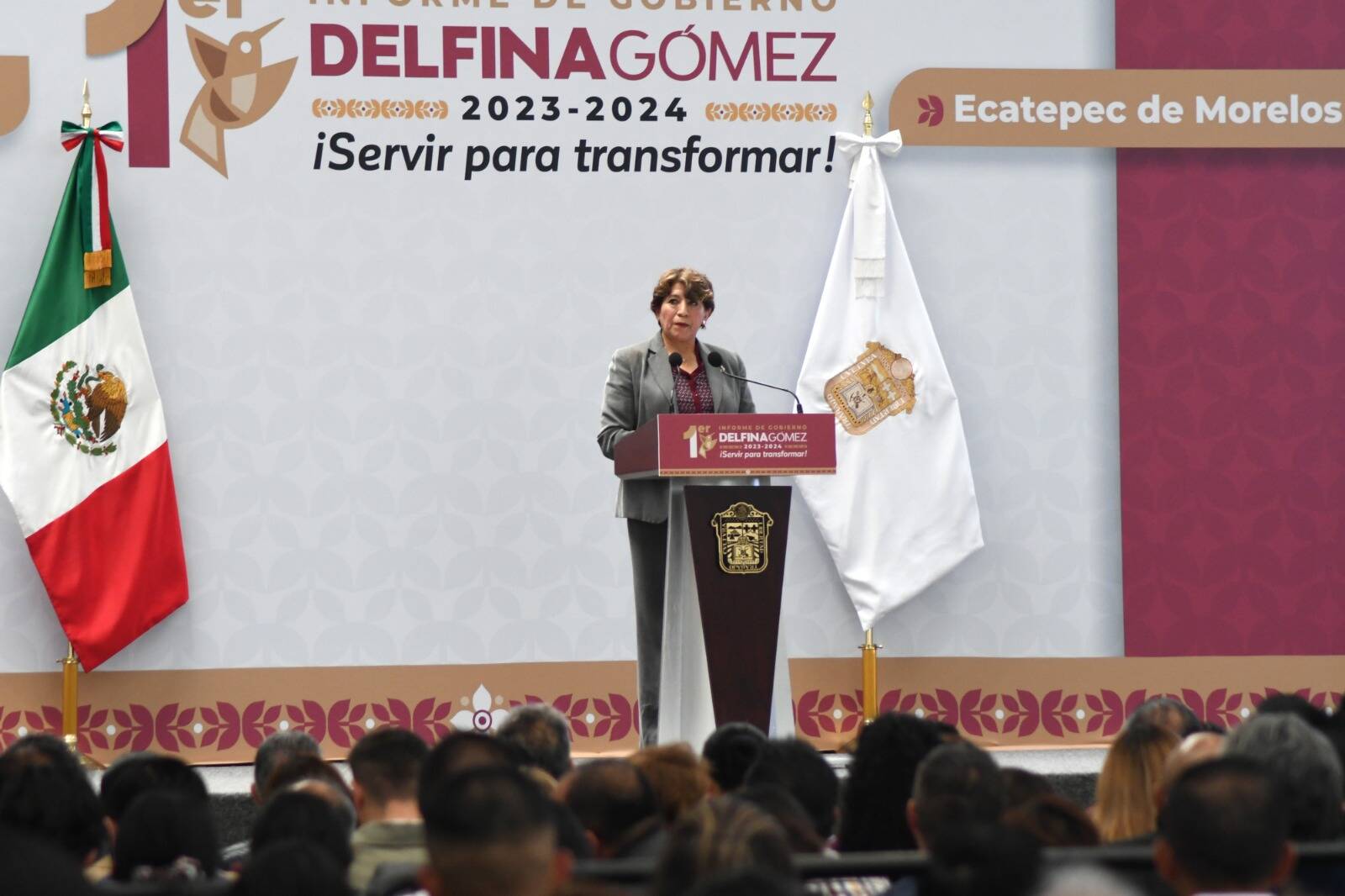La Gobernadora Delfina Gómez Álvarez rindió su segundo informe regional en Ecatepec, donde destacó avances y el despliegue para atender temas prioritarios en el el Valle de México, como agua, seguridad, movilidad, salud, educación y los programas de bienestar, particularmente aquellos enfocados a apoyar a las mujeres, que son el centro de la política social de este gobierno.