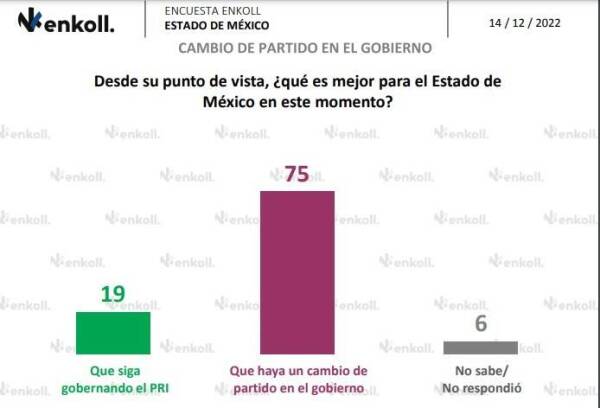 La encuesta revela que el 19 por ciento de los mexiquenses quieren que el PRI continúe en el poder y 75 por ciento quiere un cambio.