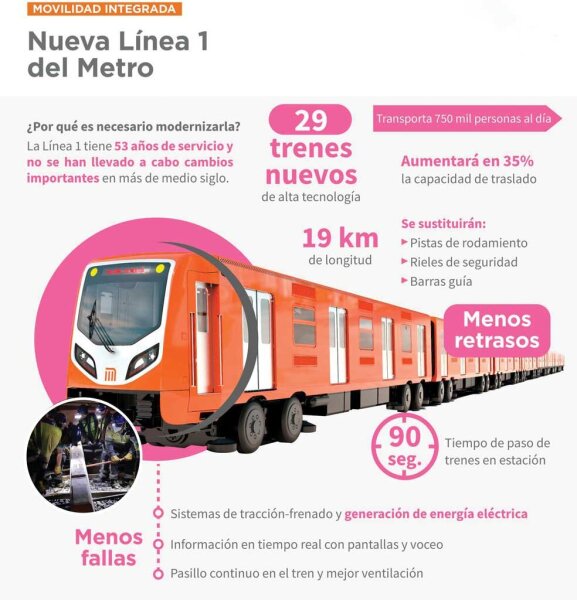 La modernización de la Línea 1 (la rosa) del Metro de la Ciudad de México comenzó en julio de 2022 como parte del proyecto impulsado por la entonces jefa de Gobierno, Claudia Sheinbaum.